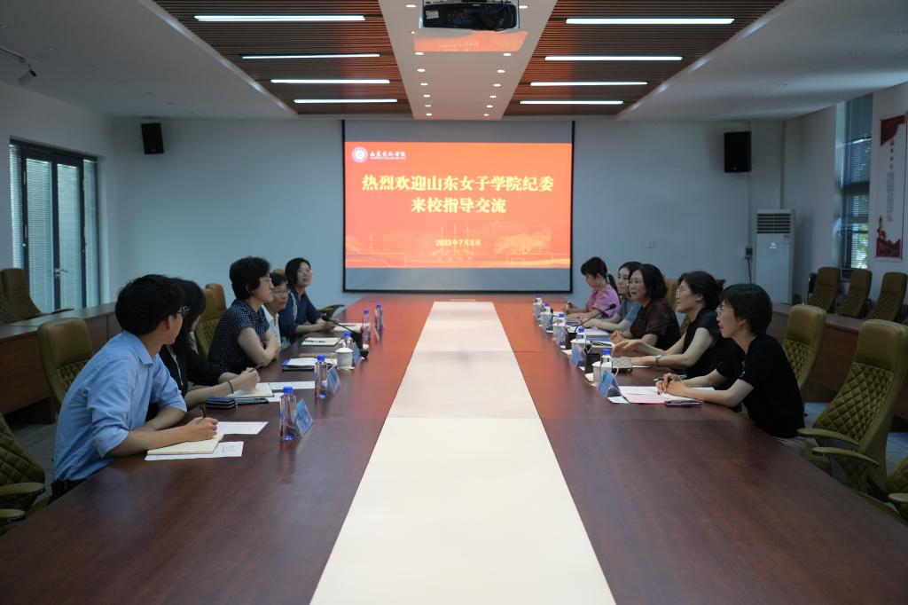 7月5日,山东女子学院党委委员、纪委书记、省监委驻山东女子学院监察专员杨恩红一行5人来我校调研交流。学校党委委员、纪委书记、省监委驻学校监察专员胡凤莹出席并主持座谈会,纪委机关相关处室负责人参加座谈。