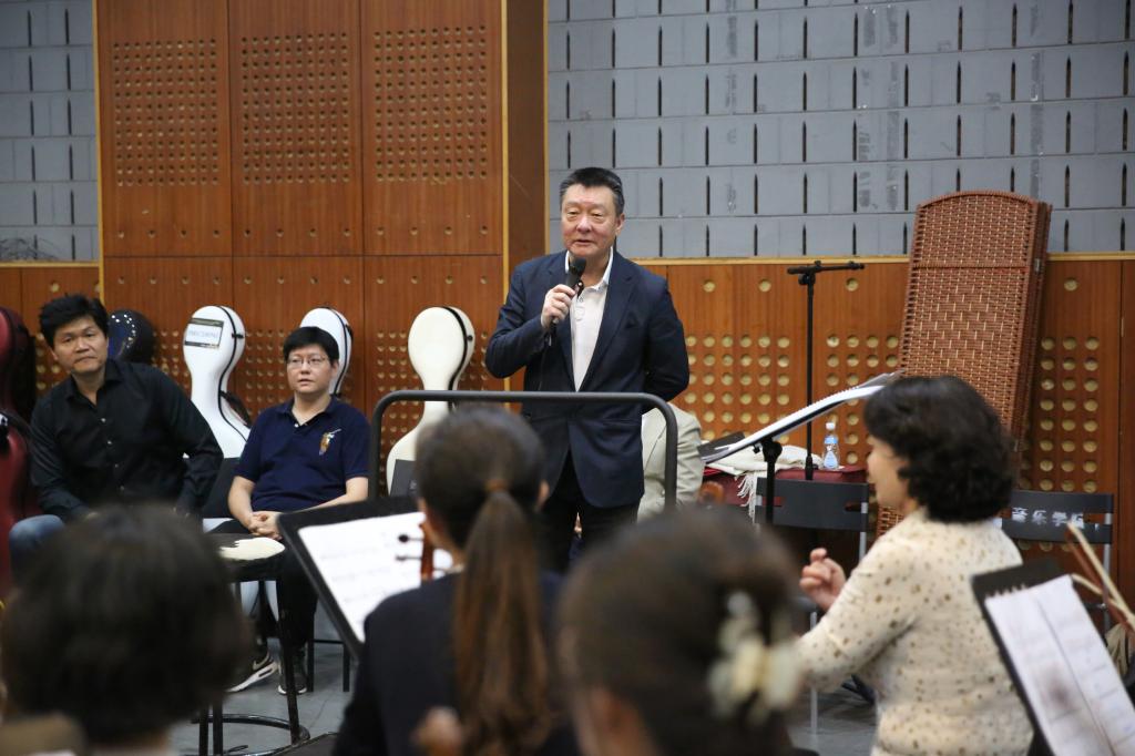 签约仪式前,中国爱乐乐团一行在文东校区音乐剧场对我校音乐学院交响乐团和合唱团排练进行了现场指导。