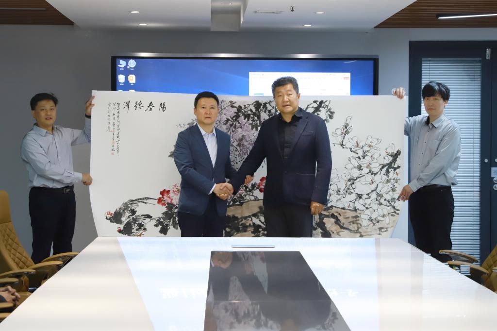10月18日,山东省美术家协会副主席、潍坊学院美术学院院长王勇,潍坊学院美术学院教授、我校1986级校友郎咸力向我校捐赠国画作品《阳春德泽》一幅,院长徐青峰代表学校接受捐赠。
