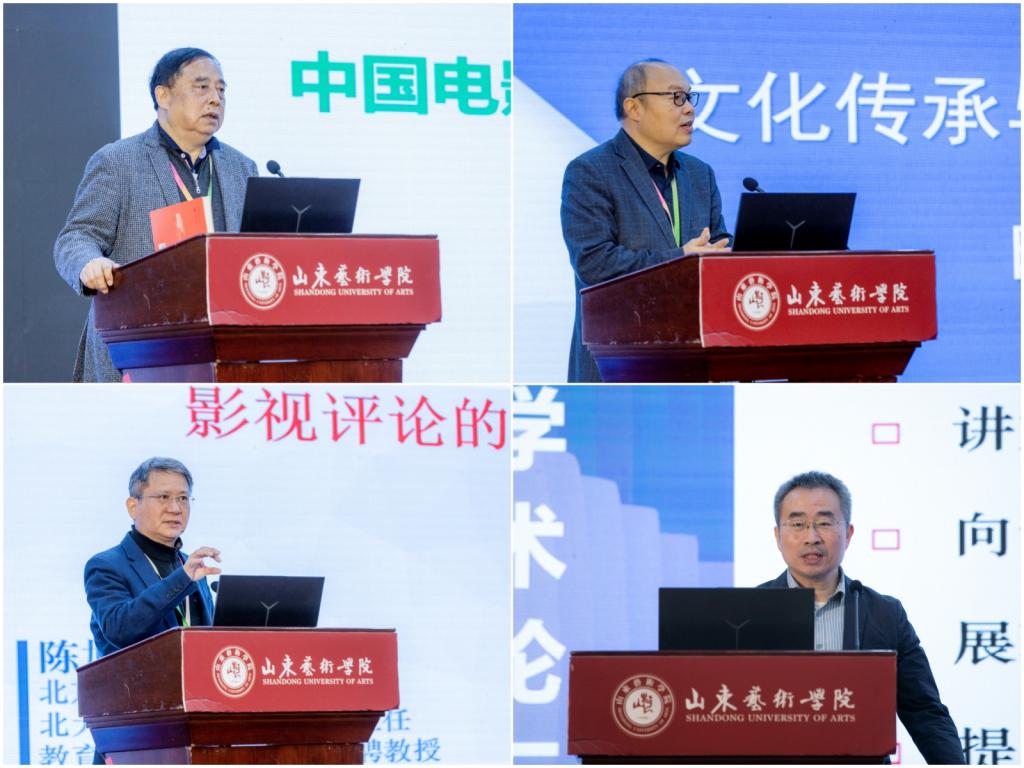 主题论坛环节由张斌主持,李亦中、陈旭光、张国涛、张阿利分别作主题演讲。在“影视评论高质量人才培养”专场论坛上,学会影视评论专业委员会理事、我校传媒学院教授刘强、山东师范大学新闻与传媒学院副院长张新英作了主题演讲。