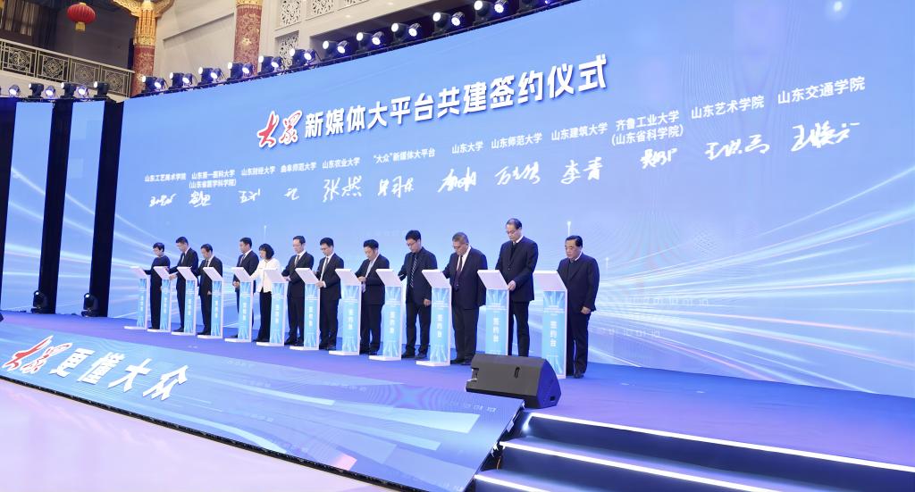 会议现场,16个省直部门、16个市、16个区县、11家高校、11家企业代表,与大众报业集团签约。山东省直部门单位负责同志;有关省属高校、省属企业负责同志;中央新闻单位负责同志;各市党委宣传部部长、分管新闻工作的副部长,各县(市、区)党委宣传部部长;重点商业平台负责同志;专家学者代表等400余人参加会议。