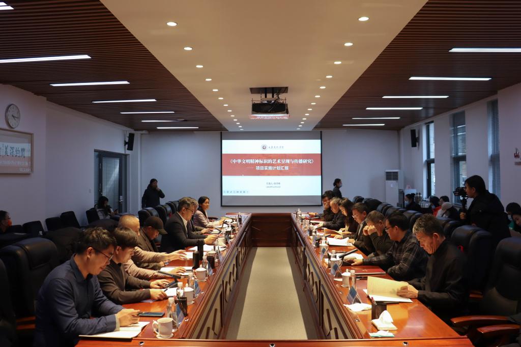 在专家论证阶段,课题首席专家徐青峰汇报了课题的主要内容和总体研究计划。他指出,要以习近平文化思想为指引,准确把握“两个结合”特别是“第二个结合”的理论逻辑、历史逻辑和实践逻辑,坚持正确的政治方向和价值导向,从中华文明精神标识的基本内涵与传承、中华文明精神标识的艺术呈现、中华文明精神标识艺术呈现的国内和国际传播等5个方面开展系统、深入的研究。要明确和细化项目研究的基本目标与主要任务,重视和强化中华文明精神和传统艺术的意义与价值研究,深入辨析中华文明精神标识的内涵及其相关理论和实践问题,充分阐释中华文明精神标识在各民族艺术中的呈现与传播特点,全面掌握国内外研究现状,重视实证性和应用性研究,着力推出具有建设性的研究成果。要加强项目实施的过程管理,健全工作机构,强化项目督导,加强项目宣传,严格经费使用管理,确保课题研究取得预期的社会价值和学术价值。