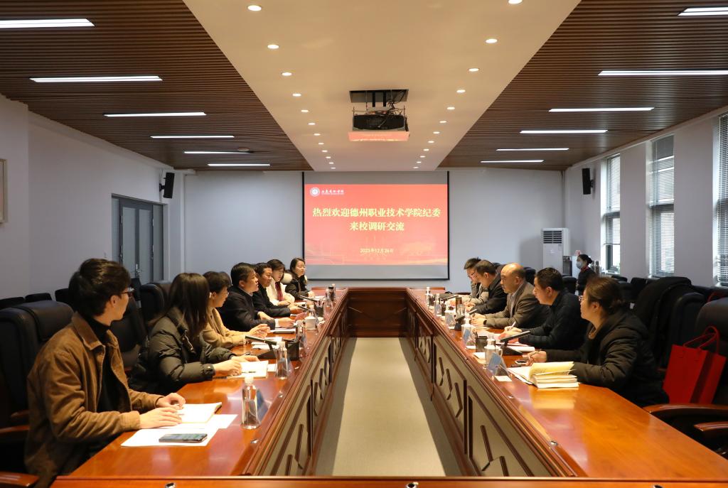 12月26日,德州职业技术学院党委委员、纪委书记卢长宾一行5人来我校调研交流。学校党委委员、纪委书记、省监委驻校监察专员周立志出席并主持交流座谈会,纪委机关各处室工作人员参加座谈。
