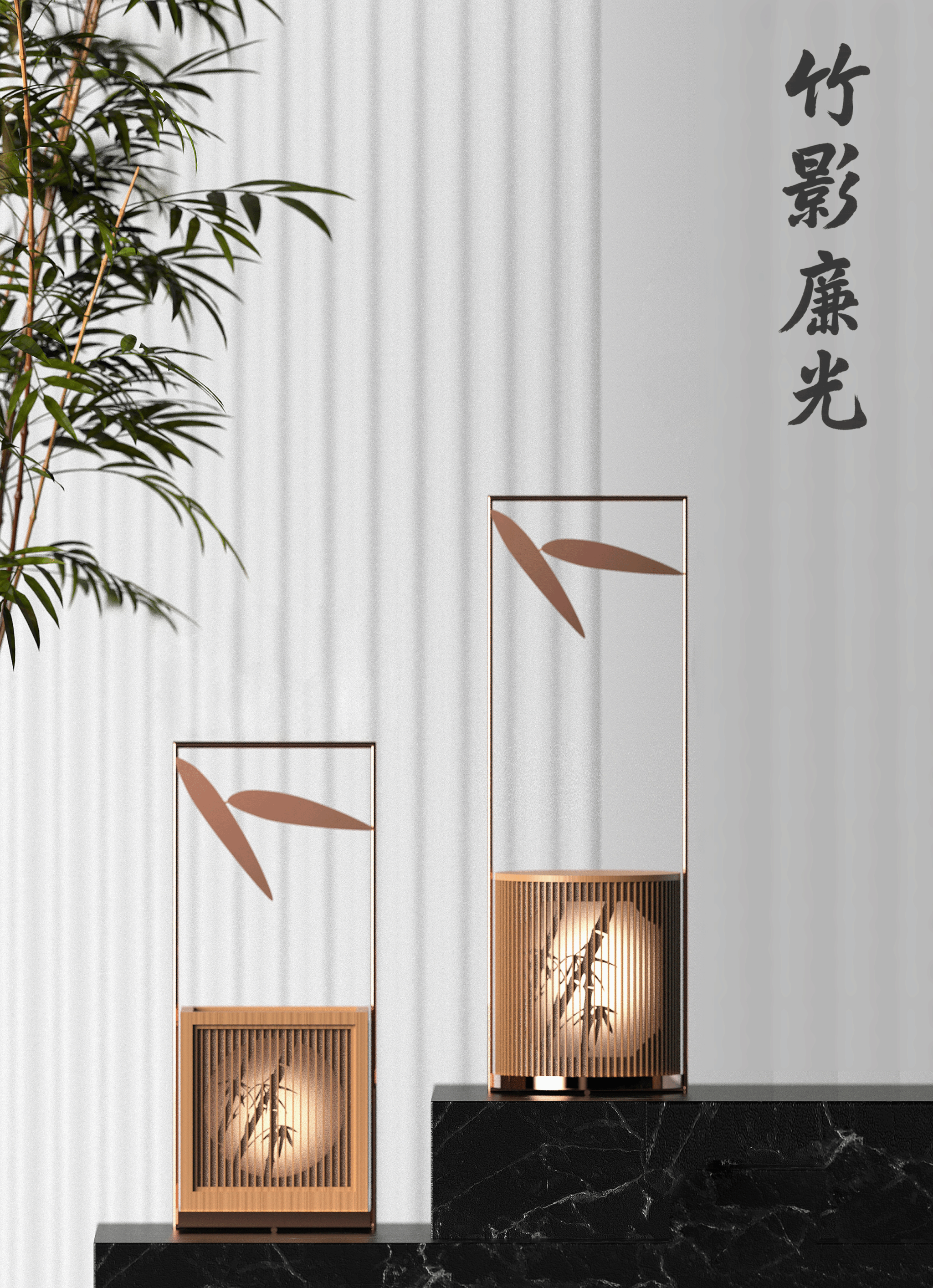 作品《竹影廉光》由设计学院副教授周策设计创作。作品以“清风拂竹,廉洁自持”为核心设计理念,以竹叶与清风为主要意象,结合中国传统廉洁文化与现代灯具造型,方正简洁的结构与温润的光影呼应,彰显“清、简、正、明”的精神内涵,营造了清雅简洁、光影相融、清正廉洁的氛围。