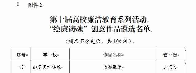 近日,教育部公布第十届高校廉洁教育系列活动结果。我校推荐作品《竹影廉光》入选“绘廉铸魂”创意作品。