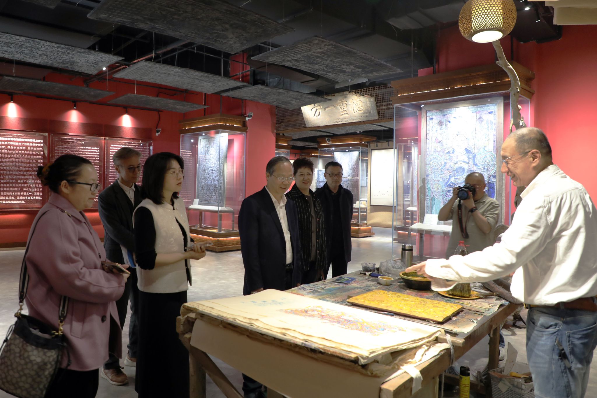 会后与会人员参观了山艺美术馆、年画雕版博物馆、汉画像石馆等场馆。中国民协,中国文联出版社,山东省民协,来自山东、天津、河北、江苏、河南等省市的民协负责人,以及学校相关职能部门、二级学院负责人参加了会议。
