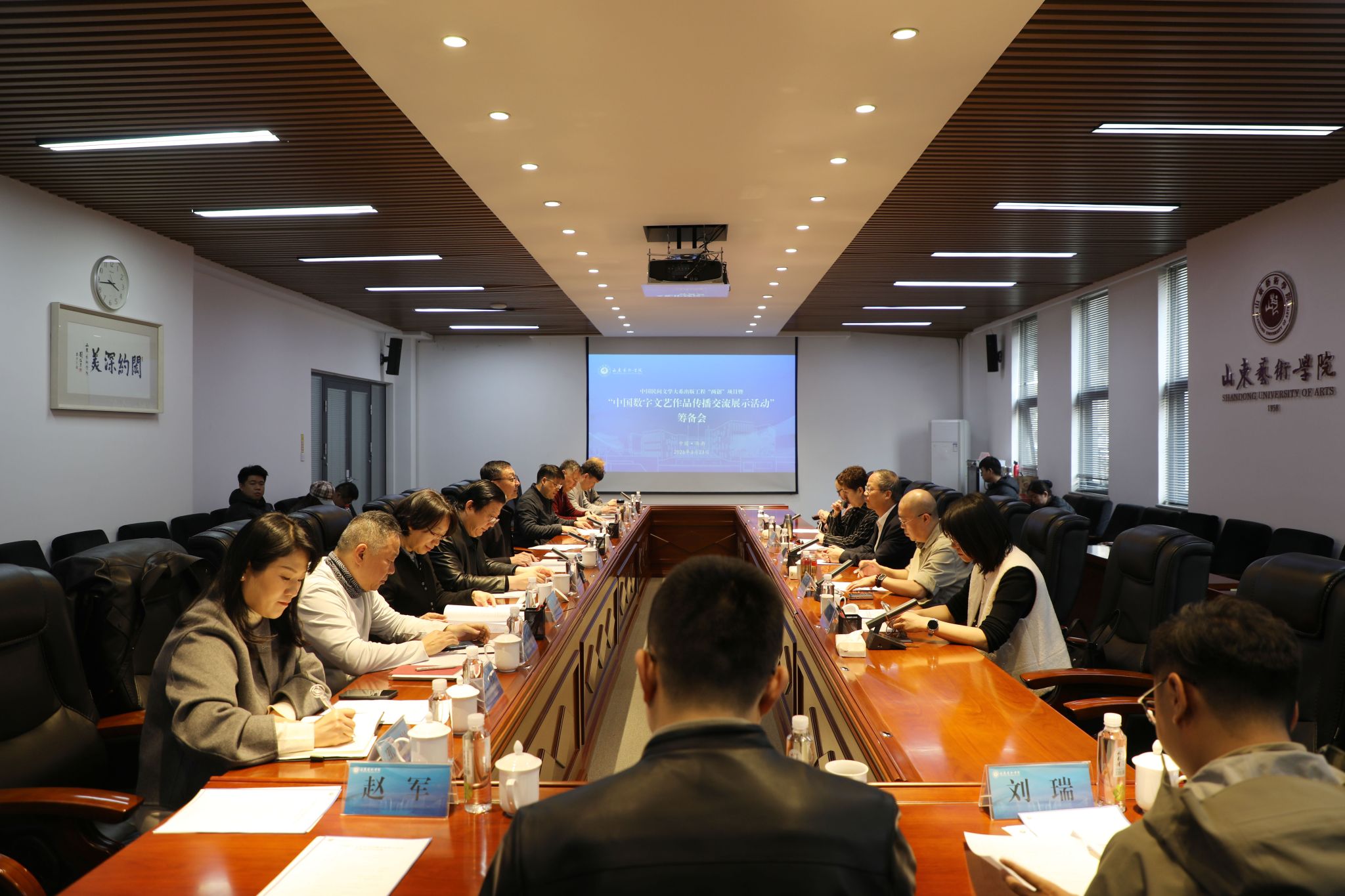 3月23日,中国数字文艺作品传播交流展示活动筹备会在我校长清校区召开。中国民间文艺家协会分党组成员、副秘书长侯仰军,山东省文联副主席、山东省民协主席赵屹,学校党委委员、副院长韩文涛等出席会议。