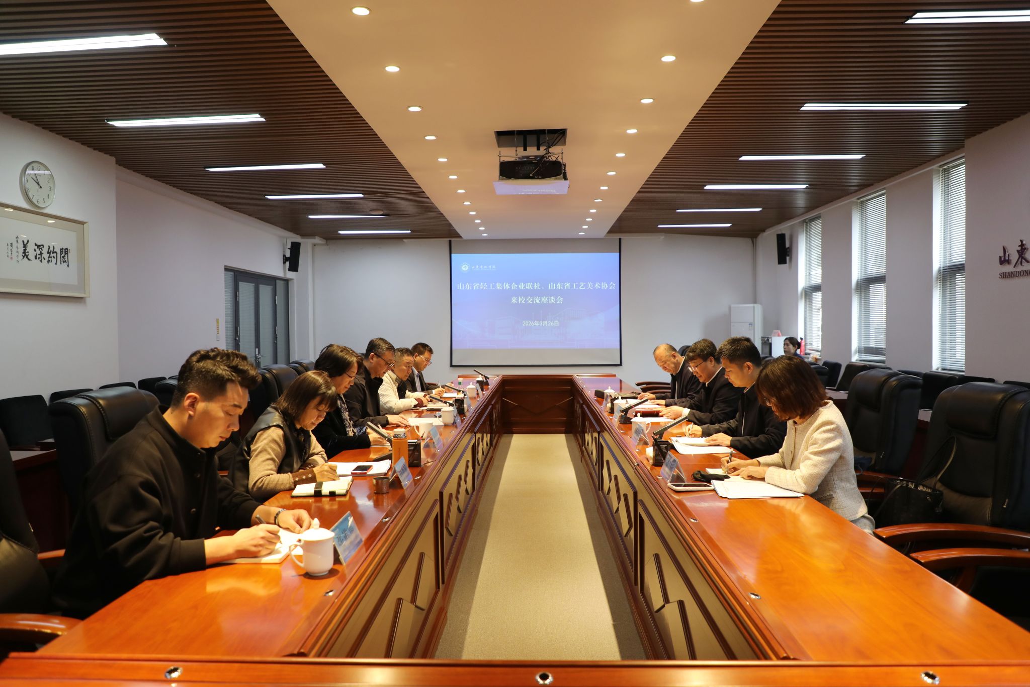 3月26日,山东省轻工集体企业联社(以下简称“联社”)党组书记、理事会主任赵德利一行5人来校交流调研。学校党委书记徐梅会见赵德利一行,党委副书记苏茂兴,党委委员、副院长韩文涛陪同会见。党委组织部、科研处、合作发展中心、艺术管理学院、城市艺术与创意学院、鲁艺(山东)产业发展有限公司相关负责同志参加座谈会。