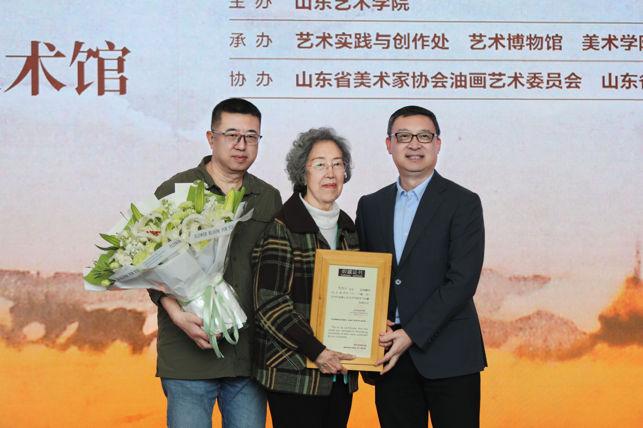 仪式上,徐青峰深情回顾了赵玉琢先生深耕艺术教育与美术创作的毕生历程,高度评价先生为学校和山东美术教育事业作出的重要贡献,并对家属无偿捐赠先生珍贵艺术作品的善举表示衷心感谢。他表示,学校将悉心收藏、研究、展示好这批作品,让先生的艺术精神代代相传、启迪后人。