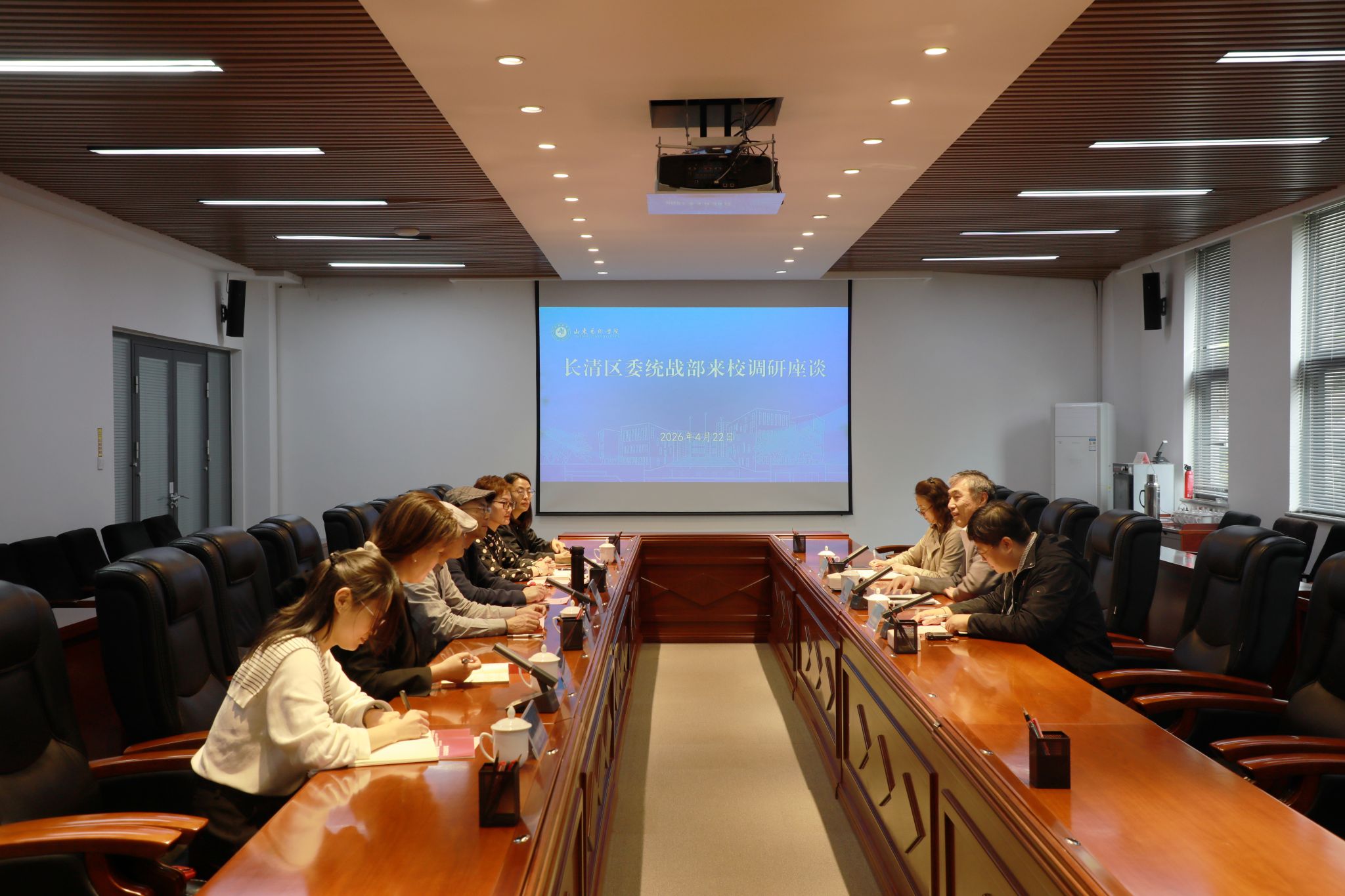 4月22日,长清区委统战部分管日常工作的副部长赵培新一行到校调研交流。党委副书记、统战部部长苏茂兴出席见面会,学校党外代表人士参加座谈交流。