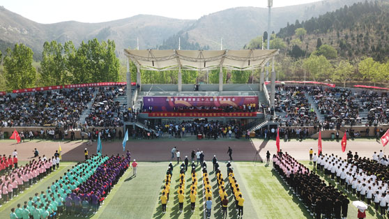 春满校园,生机勃勃。4月19日至20日,以“活力青春,甲子芳华”为主题的山东艺术学院第三十八届田径运动会在长清校区体育场隆重举行。全校师生欢聚一起,以体育的名义、运动的方式庆贺学校建校60周年。校党委书记马东骅、院长王力克、党委副书记孔祥华、副院长刘晓静、纪委书记兰绍彤,各部门、各二级学院负责同志出席盛会。