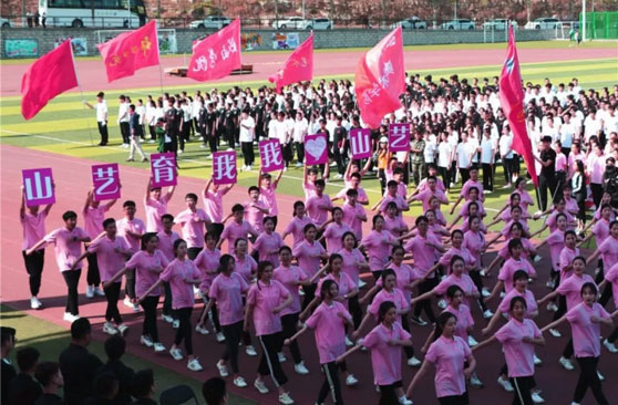 师生代表进行了精彩的庆祝建校60周年京剧表演、歌曲演唱、舞蹈、团体操等表演,场面壮观,活力四射,展现出山艺师生朝气蓬勃、团结奋进的良好精神风貌。