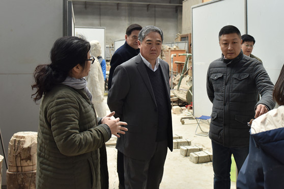 实地察看美术学院雕塑大棚