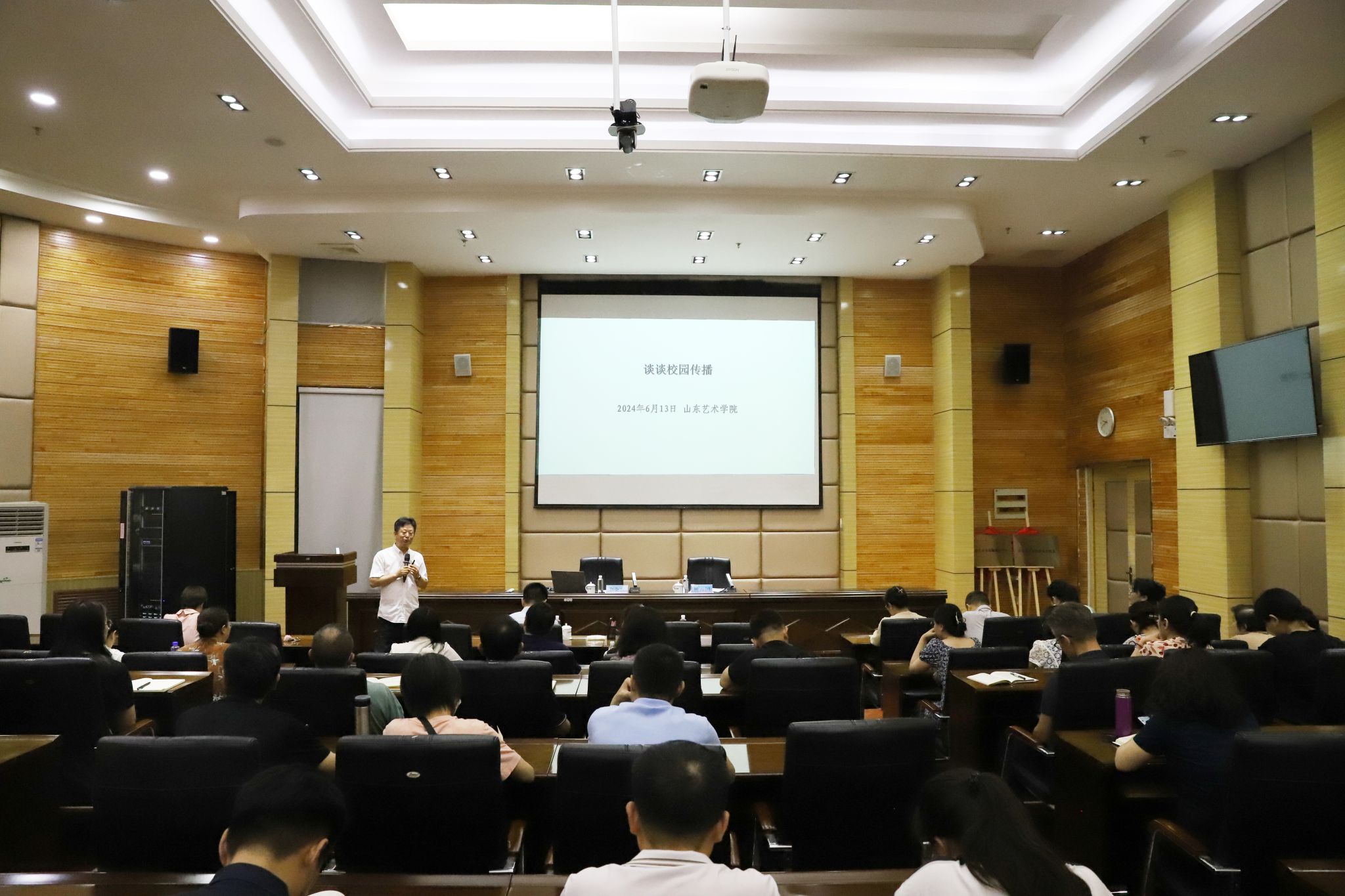 6月13日,我校在长清校区办公楼报告厅举行2024年度宣传思想工作培训暨融媒体中心揭牌仪式。山东省教育厅(省委教育工委)一级调研员、新闻中心主任宋全政,学校党委副书记杨西国,党委委员、宣传部部长孔宪坤出席活动。学校各部门、各单位分管宣传工作的负责人及相关工作人员参加活动。