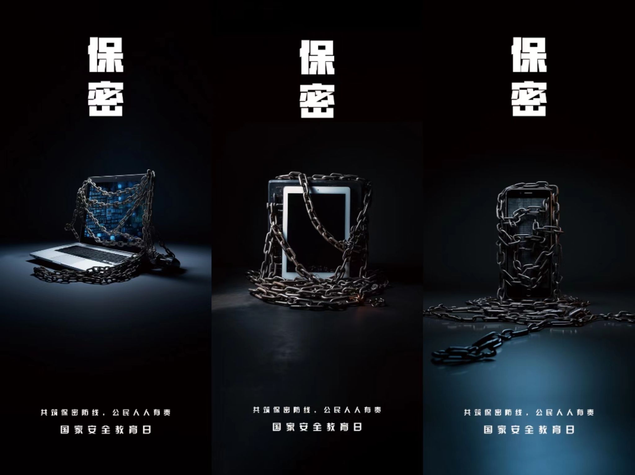 作品《锁住机密》聚焦日常生活中广泛使用的电子设备,运用象征表达方式,将无形的锁链化为有形,提醒人们在网络生活中要时刻保持警惕,始终绷紧保密的弦,如同一条紧锁的锁链,锁住机密。