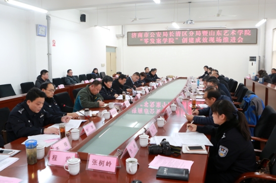 12月14日下午,济南市公安局长清区分局暨山东艺术学院“零发案学院”创建成效现场推进会在我校长清校区举行。济南市公安局经文保支队副支队长李明、三大队大队长隋健,长清区公安分局党委委员、纪委书记路芳,长清大学科技园10所高校的保卫处处长,我校党委副书记孔祥华、学生工作处处长吕春玉等出席会议。会议由长清区公安分局大学路派出所所长刘涛主持。