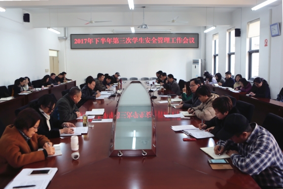 11月21日,2017年下学期第三次学生安全管理工作会议在长清校区办公楼二楼会议室召开。纪委书记兰绍彤出席会议并讲话。各二级学院党总支书记、副书记、团总支书记、全体辅导员,保卫处负责人、学生处、团委全体干部参加会议。