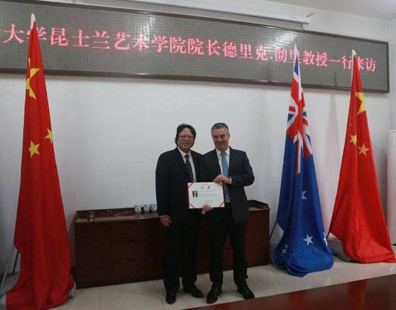 王力克校长向德里克.彻里院长颁发山东艺术学院客座教授证书