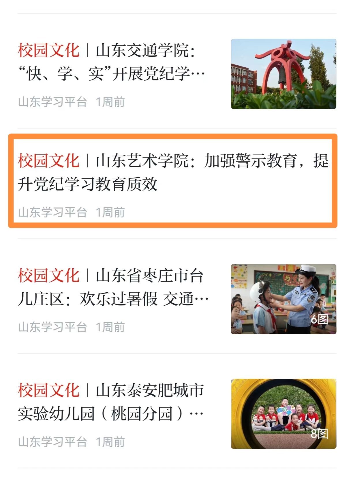 编者按 7月8日,“学习强国”山东学习平台刊登我校文章《加强警示教育,提升党纪学习教育质效》,展示了我校通过多种形式深入开展警示教育,把典型案例作为最好的活教材,让党员干部切实感受到纪法就在身边、教训就在眼前,以案促学,筑牢拒腐防变思想堤坝,推动党纪学习教育取得实效的经验做法。