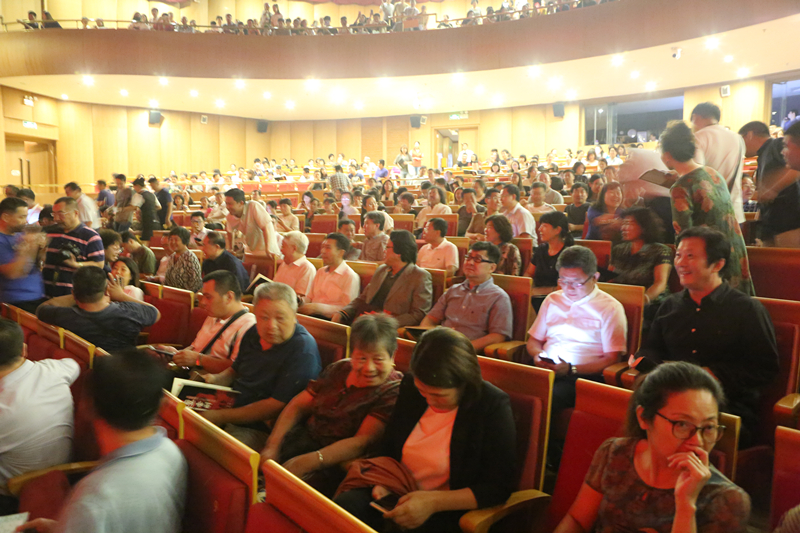 国家文化部原部长、全国政协外事委员会副主任、国家艺术基金理事会理事长蔡武,国家艺术基金管理中心副主任王勇,中国作家协会副主席、著名作家莫言,山东省文化厅副厅长张桂林,潍坊市委副书记、市长李宽端,潍坊市委常委、宣传部长、高新区党工委书记初宝杰,潍坊市政协副主席、工商联主席李士来,潍坊市政府秘书长宋均圻,潍坊市文广新局局长孙俐君,我校校长王力克、副校长高启光等领导、嘉宾,以及来自全国各地的著名音乐家、戏剧家、乐评人等专家,驻潍坊高校师生、潍坊社会各界观众观看了演出。当晚潍坊保利大剧院座无虚席,上座率创该剧院运营以来最高纪录。在场观众无不被起伏跌宕的戏剧情节、质朴感人的音乐、歌剧演员的完美演绎以及宏大的舞美场景所震撼、感染,沉浸在发生在清末民初胶东半岛高密县的一幕幕血红色的画面中。