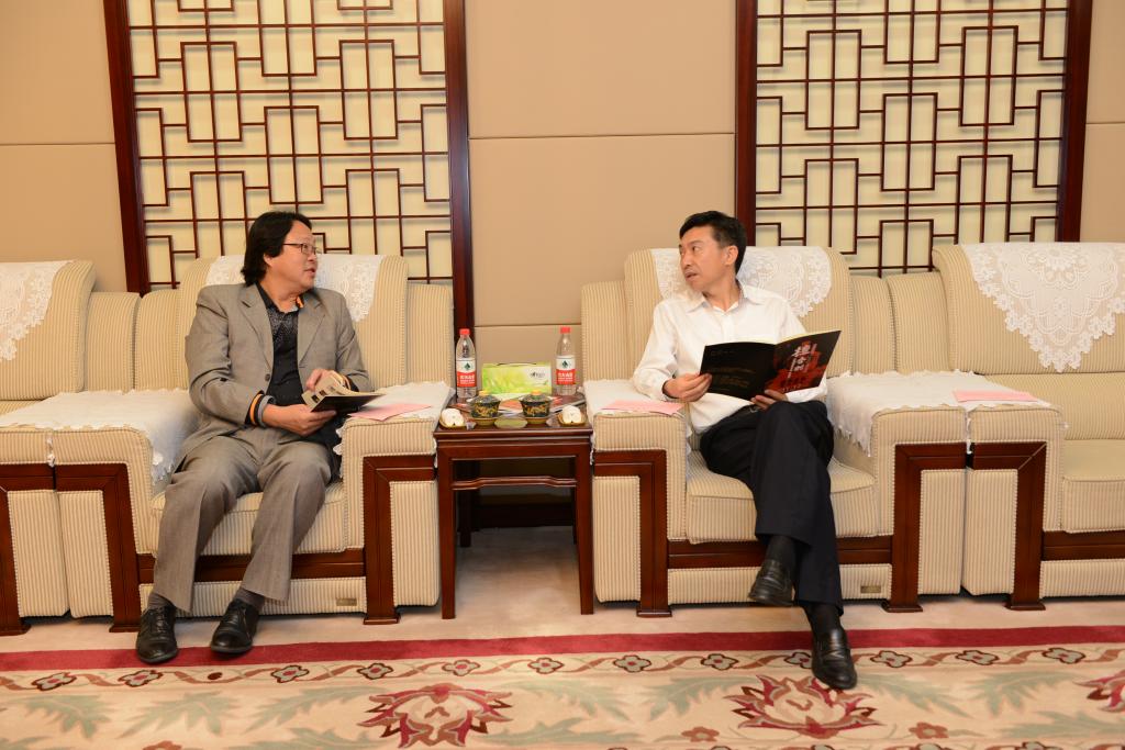 王力克校长向蔡武理事长、莫言先生一行介绍活动相关情况