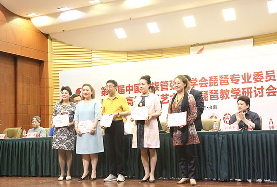 中国民族管弦乐学会会长、箸名作曲家、中国歌舞剧院原院长刘锡津,中国民族管弦乐学会副会长、中央广播艺术团原团长王书伟,中国民族管弦乐学会琵琶专业委员会会长、中央音乐学院民乐系原系主任、琵琶演奏家、教育家李光华,琵琶专业委员会常务副会长、中央民族乐团原副团长、全国政协委员、琵琶演奏家吴玉霞,琵琶专业委员会副会长、琵琶演奏家、教育家、中央音乐学院民乐系弹拨教研室主任张强,琵琶专业委员会副会长、中央广播民乐团弹拨乐器声部长、著名演奏家陈音,山东省文化厅副厅长张桂林,山东艺术学院副院长刘晓静等领导和专家出席开幕式,近300位来自全国各大音乐院校、一级院团的琵琶教育家、演奏家和一线琵琶演奏人员参加大会。开幕式由山东艺术学院音乐学院民乐系主任杨秀玉教授主持。