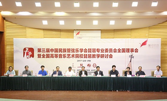 5月25日上午,为推动琵琶事业的普及与发展,秉承“弘扬民族文化、振奋民族精神”的理念,提高全国高等艺术院校琵琶教学水平,由中国民族管弦乐学会、山东艺术学院主办,中国民族管弦乐学会琵琶专业委员会、山东艺术学院音乐学院承办、山东艺术学院首届毕业展演季系列活动之一的第三届中国民族管弦乐学会琵琶专业委员会全国理事会暨全国高等音乐艺术院校琵琶教学研讨会在山东艺术学院文东校区综合楼一楼音乐厅开幕。