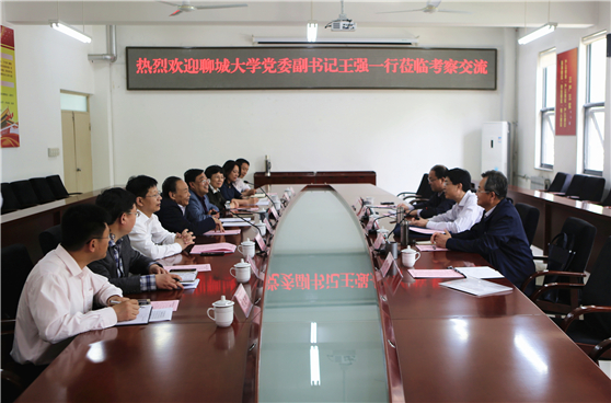 5月4日,聊城大学党委副书记王强带领党委宣传部部长乔丙武、学生工作部(处)长张乐方等一行5人来我校考察交流。座谈会在长清校区办公楼二楼会议室举行,党委书记李宗伟、党委副书记孔祥华出席座谈会,座谈会由孔祥华主持。