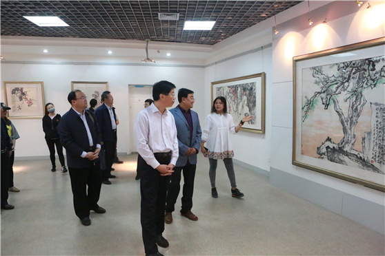 王强一行还实地参观了我校校史馆、汉画像石馆、于希宁纪念馆、教师美术作品陈列馆、梨园霓裳馆、鲁锦艺术馆,并饶有兴致的观看了正在展览的图书馆、艺术博物馆馆藏书画作品展。