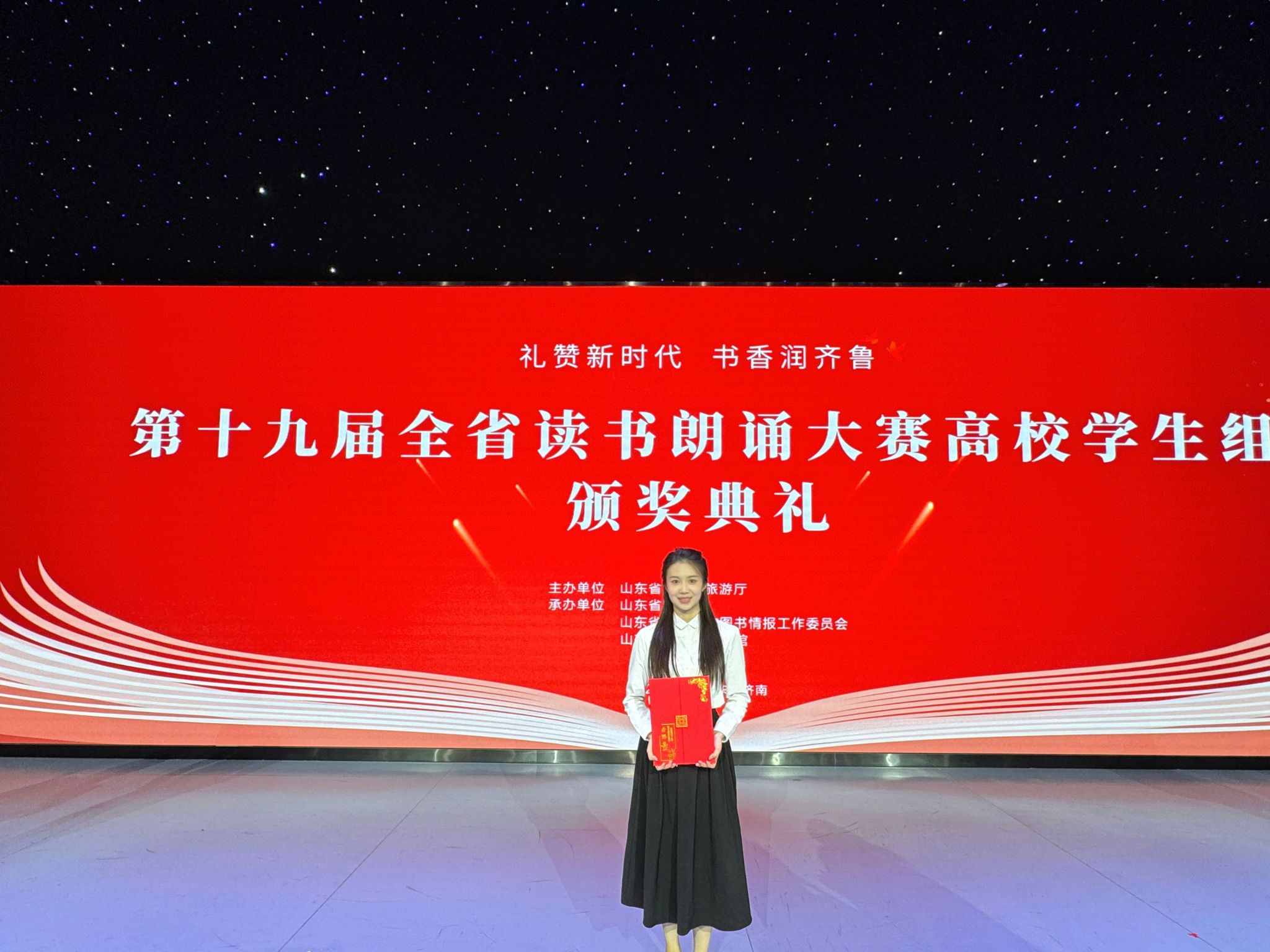 近日,我校师生在第八届“爱我国防”山东省大学生主题演讲大赛中喜获一等奖、优秀辅导老师奖;在第十九届全省读书朗诵大赛高校学生组决赛中喜获一等奖和二等奖,图书馆荣获优秀组织奖。