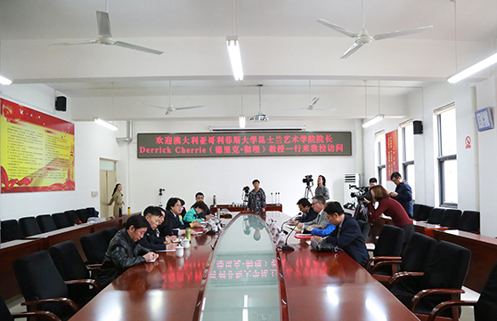 3月22日上午,山东艺术学院与澳大利亚哥利菲斯大学合作办学项目研讨会在长清校区办公楼二楼会议室举行。哥利菲斯大学昆士兰艺术学院院长德里克·彻里、副院长伊丽莎白·范德雷,哥利菲斯大学国际交流中心主任夏星,山东艺术学院院长王力克出席研讨会。研讨会由国际交流合作处负责人主持。