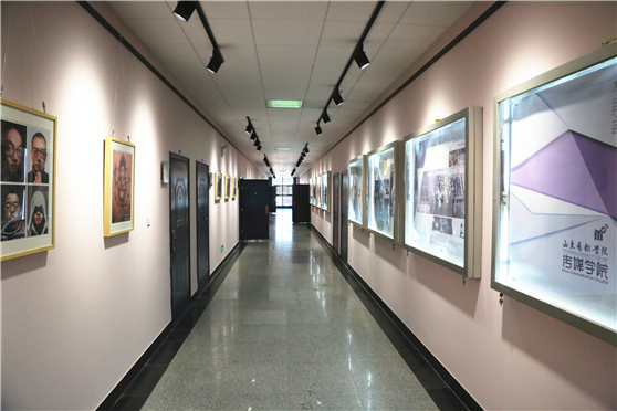 传媒学院干净整齐的走廊文化展示