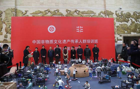 文化部2016年正式启动了“中国非物质文化遗产传承人群研修培训计划”,全国共有57所院校参与此项工作。山东艺术学院自2015年试点培训以来,目前共完成了剪纸、草柳编、面塑、琉璃烧制、泥面塑等五个非遗项目共计六期的培训班,培训非遗传承人和从业者300余人,取得了良好效果。