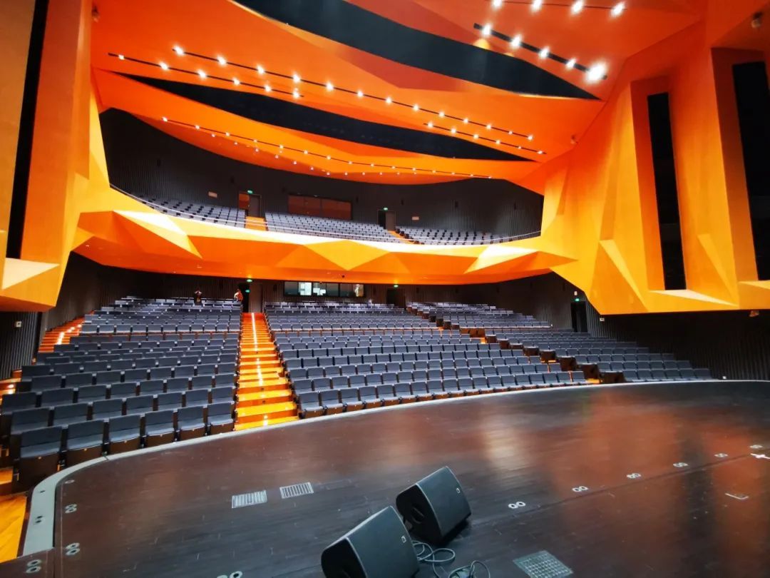 艺术实践中心是学校重要的公共文化设施,其中剧场适用于音乐、舞蹈、戏剧等艺术形式的演出,主要服务于学校自身教学、演出需要,同时兼顾对外演出功能。剧场的室内设计遵循适用、环保、艺术、舒适、经济的理念,致力打造具有国际化水准的集表演、教育与展示为一体的专业化剧场。