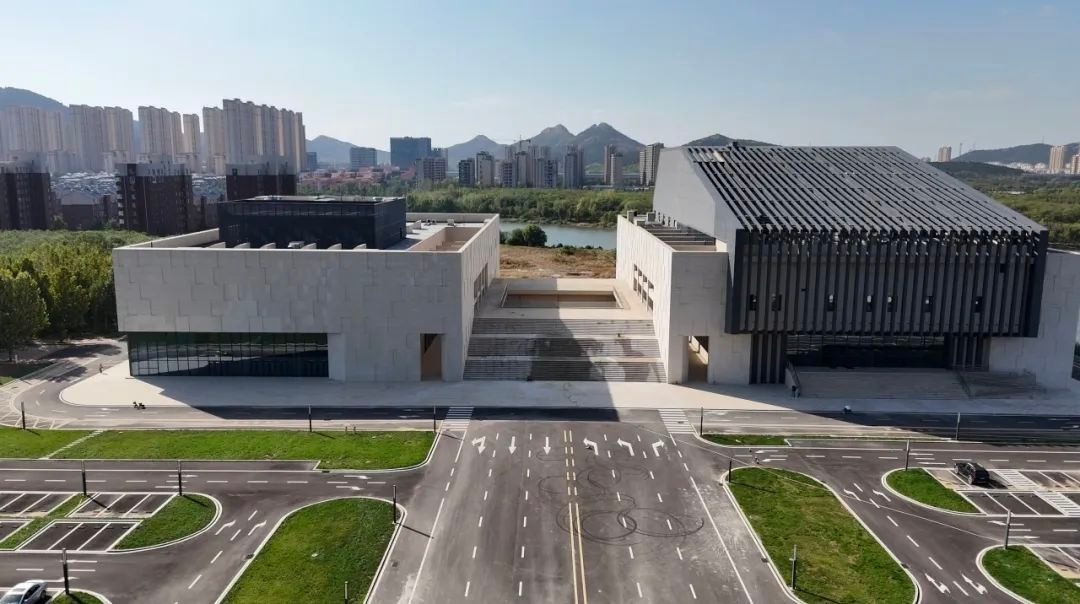 山东艺术学院艺术实践中心位于长清大学科技园紫薇路 6000号,东临紫薇路、西至北大沙河、南临中建瀛园艺苑小区,由剧场、美术馆、庭院三部分组成,其中剧场建筑面积11704.39平方米,地下一层、地上三层,包括中心剧场、排练厅等,剧场座位1100座;美术馆建筑面积7768.51平方米,地上三层,建筑功能为展厅等;庭院在地上一层,建筑功能为室外大台阶。
