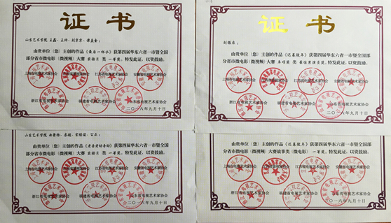 在由山东省电视艺术家协会、上海电视艺术家协会等七家协会联合主办的第四届华东六省一市暨全国部分省市微电影(微视频)大赛中,传媒学院6部作品在500余部参赛作品中脱颖而出,获得7个奖项,其中最佳男演员奖1项、一等奖3项、二等奖1项、三等奖2项。