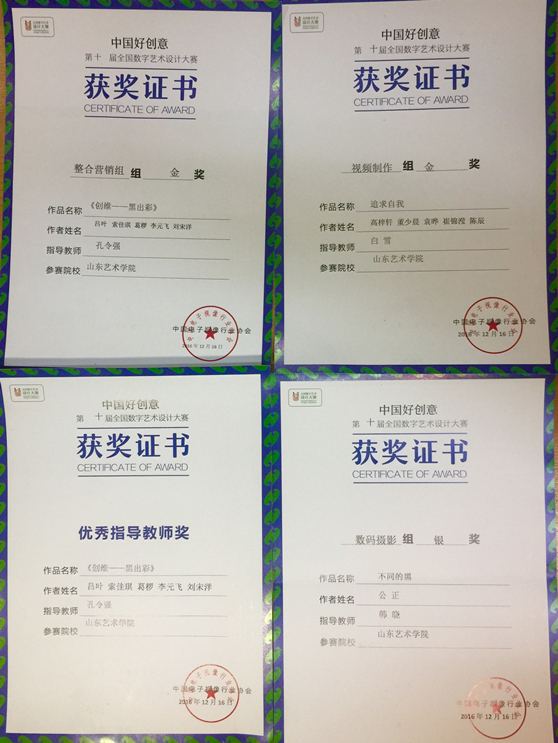 近日,我校传媒学院学生作品在第十届全国数字艺术设计大赛中和第四届华东六省一市暨全国部分省市微电影(微视频)大赛中频获佳绩。