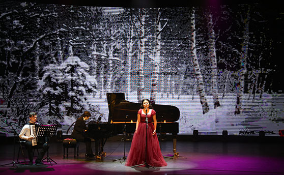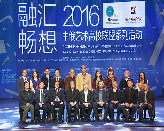 12月12日晚,“融汇•畅想”中俄艺术高校联盟系列活动暨中俄艺术交流晚会在山东艺术学院文东校区艺术剧场隆重举行。来自列宾美术学院、圣彼得堡国立里姆斯基-科萨科夫音乐学院的师生,中国教育部国际司项目官员李睿思、山东省外国专家局局长张祝秀、山东省教育厅副厅长孟庆旭、山东省外事办公室领导、联盟成员院校领导和山东艺术学院党委书记李宗伟、院长王力克出席欢迎仪式。山东艺术学院副院长高启光主持欢迎仪式。