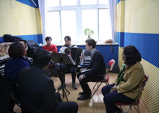 三位音乐家分别来到山东艺术学院音乐学院和音乐教育学院,为钢琴专业、声乐专业和手风琴专业的师生带来了一天的精彩大师课。音乐家们通过现场授课、示范演奏、演唱、互动讨论等形式传授了他们的表演心得。德米特里·帕夫里以极其细致的处理、丰富细腻的情感为同学们讲解了演奏过程中的不足,给大家带来了一场视听盛宴。努尔穆罕默多娃·季阿娜女士精湛的歌唱水平、丰富的艺术修养和耐心细致的教学态度,让师生们深受启发,参加授课的学生也得到了很大收获。尼古拉·奥夫钦尼科夫从对不同作品风格的准确把握、音乐的表现力、风箱的控制等方面对手风琴专业的学生进行了悉心指导,和师生们一起分享了他学习生涯的收获与感悟。