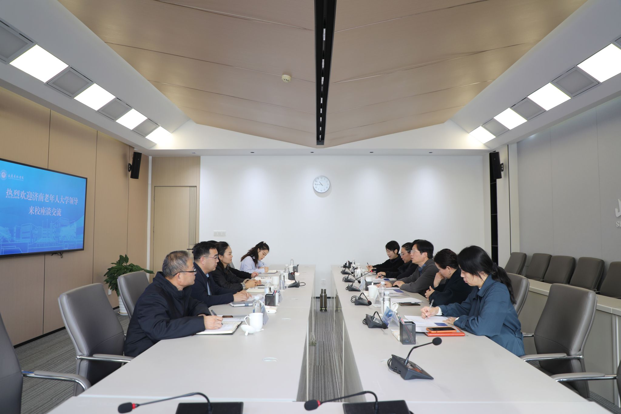 座谈会上,樊祥钦介绍了济南老年人大学办学规模、教学条件以及“名师优课”计划,对两校合作方向提出设想,期待联手共创校际合作发展之路。学校发展规划处负责人简要介绍了我校基本情况和在推动全民终身学习方面的专业优势。艺术教育集团负责人就中老年教育培训等相关业务开展情况进行了交流。双方就师资、教学、学生实践、志愿服务、研学研修、服务社会等多项内容进行了深入探讨。