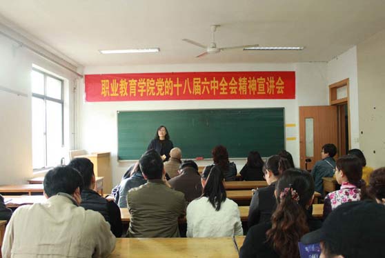职业教育学院全体教师一致表示,要紧密团结在以习近平同志为核心的党中央周围,在省委和学校党委的正确领导下,进一步加强学习党的十八届六中全会精神,结合职业学院教学与管理工作进行深入贯彻,认真扎实做好自身各项本职工作,为学校“十三五”发展规划的实现做出自己的贡献,以优异成绩迎接党的十九大胜利召开。