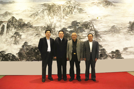10月18日下午,山东省委常委、宣传部部长孙守刚来到山东大厦美术馆,看望慰问正在为人民大会堂创作巨幅泰山主题国画的山东艺术学院院长张志民教授。