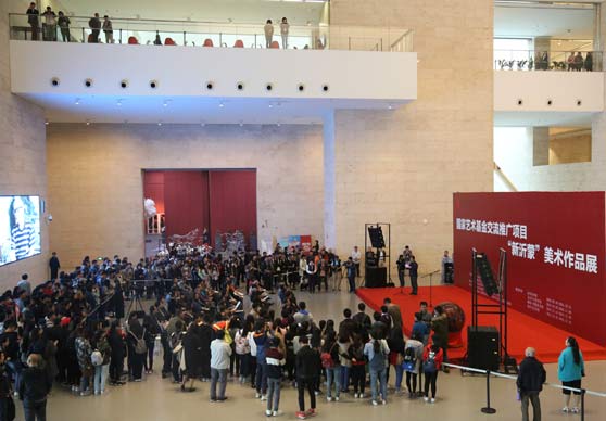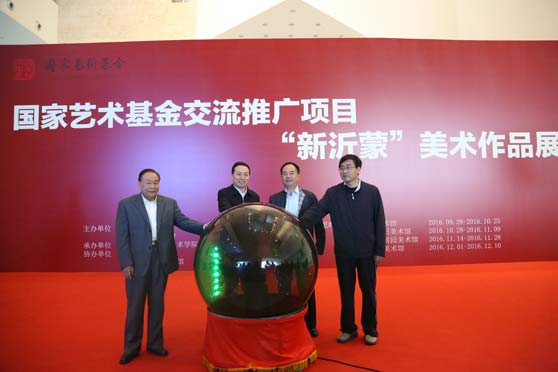10月15日,“国家艺术基金交流推广项目‘新沂蒙’美术作品展”在山东美术馆隆重举行开幕式。山东省委常委、宣传部部长孙守刚,山东省委宣传部副部长王红勇,济南军区原副司令员吴辉建,山东省文联副主席姬徳君,山东省文化厅副巡视员刘敏,山东画院院长孔维克,山东省美术馆馆长柳延春,临沂市文广新局副局长魏泽来,山东艺术学院党委书记李宗伟,山东艺术学院院长、山东省美协主席张志民,山东艺术学院党委副书记王力克、副院长高启光,及山东艺术学院美术学院院长张淳,艺术家代表陈国力、雷加民、张洪祥、沈光伟、梁文博等,驻济高校、艺术机构的领导和专家出席开幕式。开幕式由高启光主持。