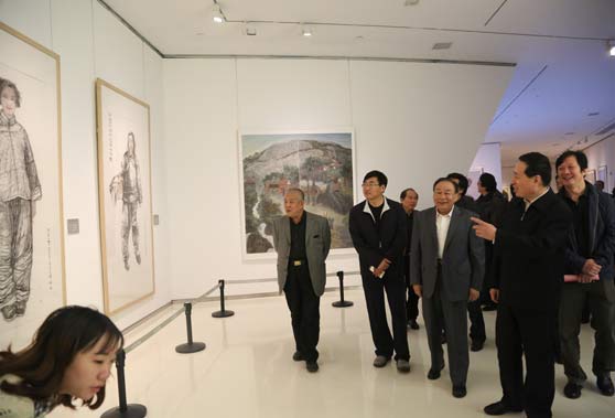 山东省委常委、宣传部部长孙守刚等领导观看山艺教师创作的《沂蒙六姐妹》(国画、油画各六幅)