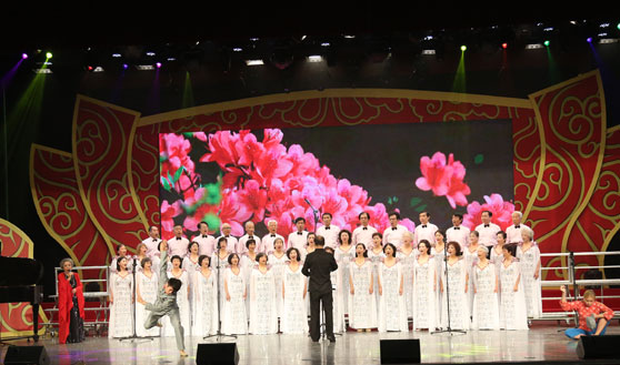 我校老年合唱团阵容豪华庞大,由46人组成,赵庆霞教授担任领唱,曹克恩教授担任钢琴伴奏,何清涛教授担任指挥并改编参赛曲目《映山红》和《祖国不会忘记》,舞蹈学院冉胜、孙晓红同学担任伴舞。在全省17地市代表队和省直赛区选拔出的6支代表队的激烈竞争中,我校老年合唱团表现优异,展示了离退休干部良好的精神风貌和出色的演唱水平,为学校争得了荣誉。