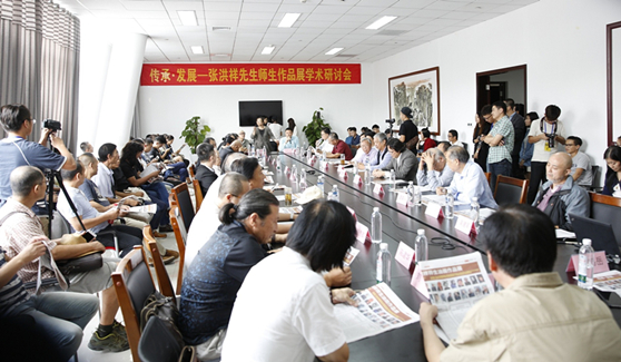 开幕式后举行了研讨会,研讨会由高天民主持。来自全国的专家、艺术家共聚一堂,回顾了张洪祥先生在油画学习与油画教学过程中对山东油画发展所做出的贡献,同时与会者也就山东油画的传承发展脉络进行了探讨。