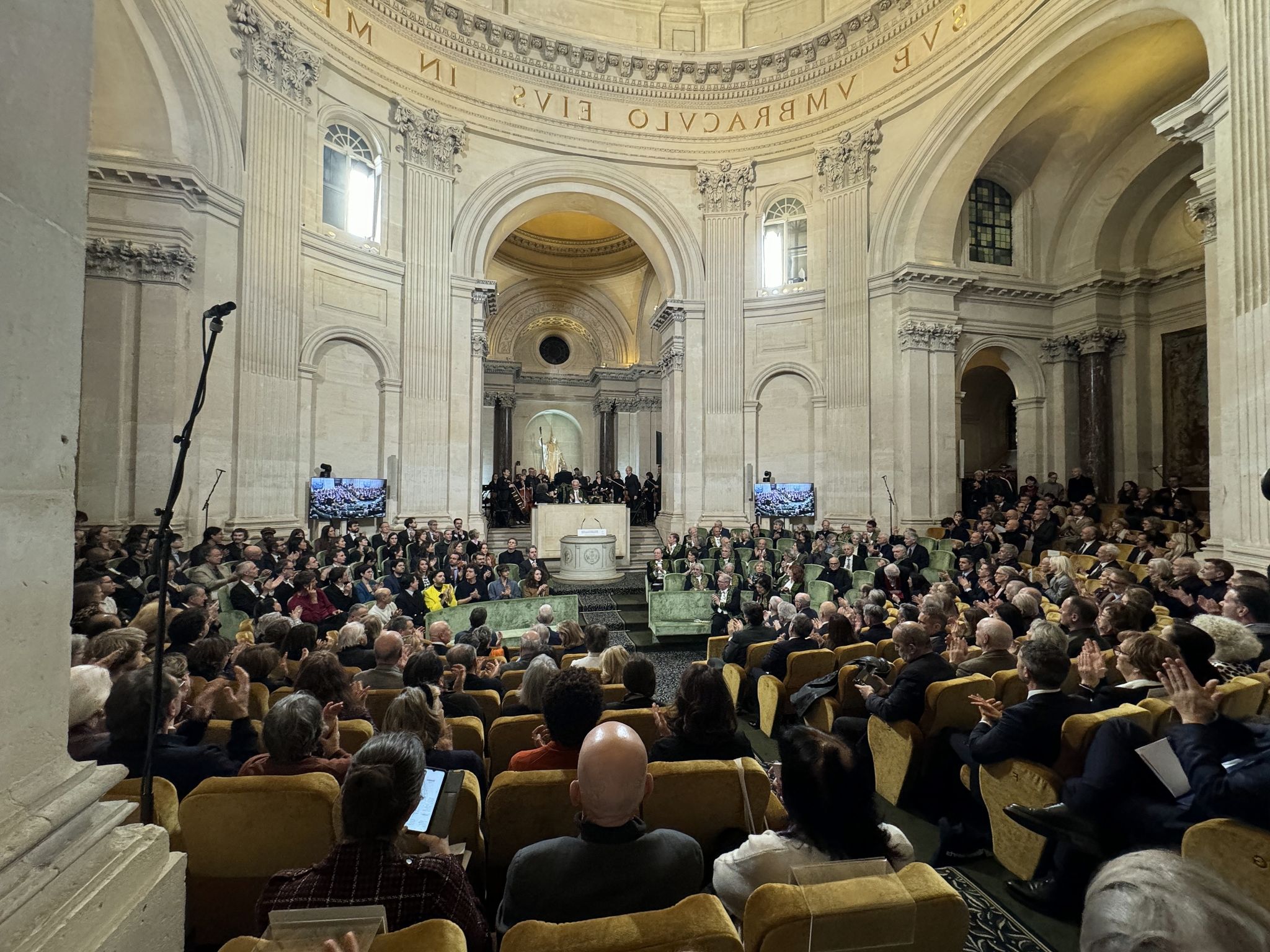 巴黎时间11月20日,法兰西艺术院年度学术会议在法兰西学院圆顶大厅举行,院长徐青峰受邀出席会议,与法兰西艺术院终身秘书长、院士洛朗·佩蒂吉拉尔(Laurent PETITGIRARD),法兰西艺术院中国事务代表、通讯院士、法国让·卡尔多基金会主席迪埃·贝奈姆(Didier BERNHEIM),法国让·卡尔多基金会委员、中法艺术与科学研究发展协会执行主席陈岩 (Eliane CHEN)进行了学术座谈交流。