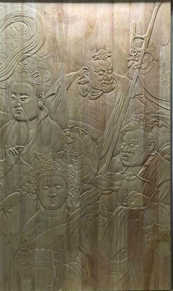 马国辉《永乐宫壁画-局部之七》橡木板、浅浮雕雕刻140x81cm