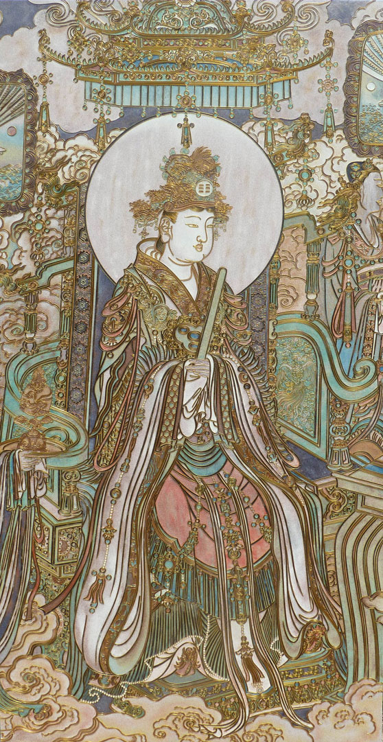 沈万钧 纪彤《西王母》木胎板、地仗、岩彩、中国画颜料、沥粉贴金180*100cm