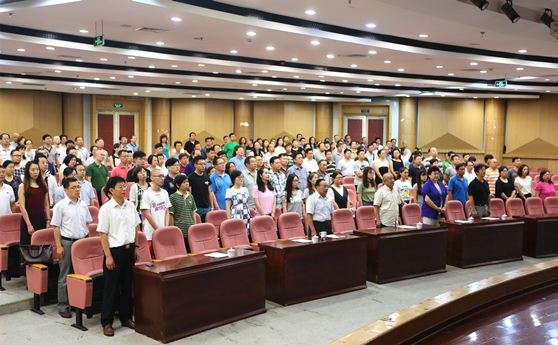 大会开始,奏响庄严的国歌,全场起立共唱国歌